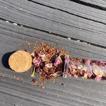 White Peony Tea Base with heather, elderflower, orange peel, and red clover. (caffeinated)